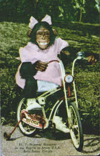 [chuckles at shaved chimp in suspenders pole-dancing]
