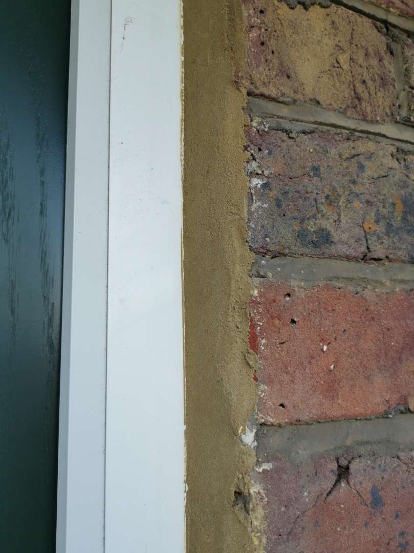 If it’s the beading around the door frame, I bet it’s epoxy bound stuff. Got it on our patio doors. Seems to be a reasonable shortcut bodge instead of massive beads of silicone.