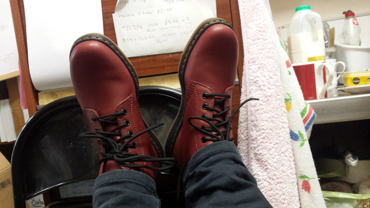 Yup. Favourite footwear ever. Currently have three pairs of boots. Only today have I taken delivery of some 14-hole 1B99s to replace my beloved-but-knackered antique red 9733s. They are my work footwear of choice. And I’m a middle-aged woman.