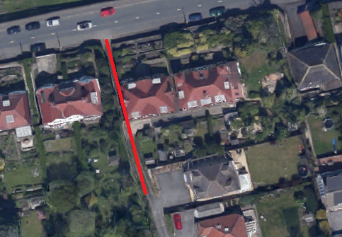 It's currently not surfaced at all really - I can't tell if it has ever been tarmacced; the top part of the road is (top being the bottom of the picture confusingly!), but then it just kind of stops where the red line begins and we've got nothing more than a dirt track pretty much. I think it would need properly surfacing, as it stands it is being washed/dragged away down the hill by cars/weather. The worst culprit is the chap who lives in the house where the line starts, he goes down (and even up) it in a heavy 4WD pickup every day.