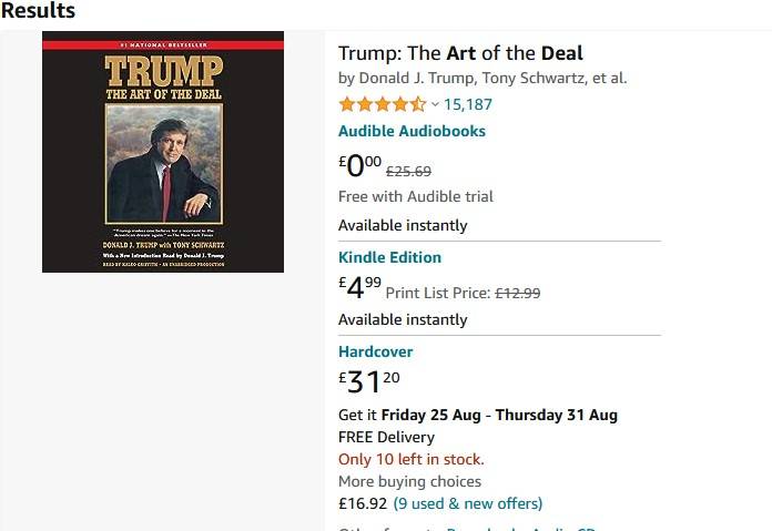 Genuinely, it isn't. That's because it really doesn't have anything to do with him. I wasn't written by him, and really (although he is the subject) it isn't really about him. The bits that are about Trump are warmed-over profiles, the business part of it was written entirely by Tony Schwartz, and honestly if Trump and bothered to read it (if he can actually, read that is) He'd probably be a pretty successful property dealer in New York. Recently Schwartz has said that it was this book and the US version of Apprentice that made Trump look like a multi million dollar success story rather than the cheap crook he really is, and he feels with hindsight that it was a mistake. It did put his kids through college though, so there's that.