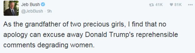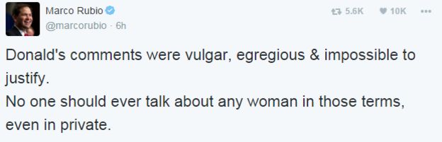 A veryvalied point! However, this tme Trump has felt the need to issue a full and frank apology (his first and only!), which is a good indicator that what he has done is not acceptable.