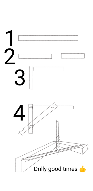 I need to drill the holes in the shelf straight. The shelf is just a big chunk of wood. Actually the floating brackets go 250mm deep into the wood with a 12mm diameter. That's the challenge. The holes for the plugs in the wall are no problem, they don't need that level of accuracy.