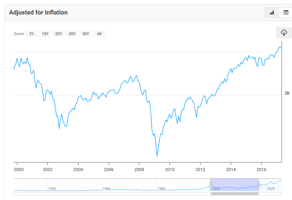 There have been other notable periods since then that have not been great and in fairly recent memory, S+P 500 lost decade: