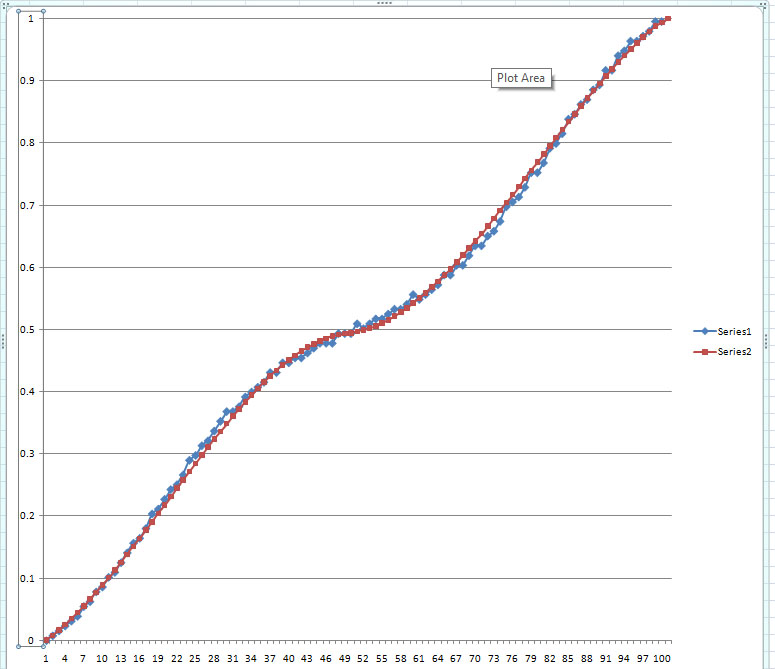 [edit - I suspect this is also a sigmoidal curve. Must be cleverer...]