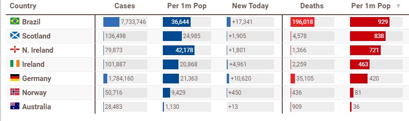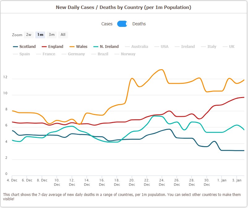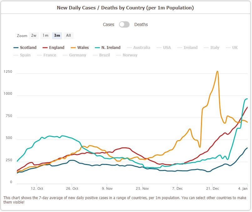 Scotland now has 40% of the infections of England. dunno if that is reflected in overall deaths