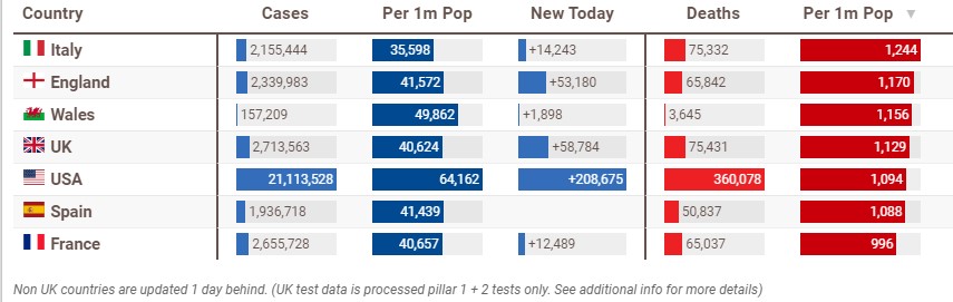 Yup - our UK wide deaths per million population is about 20% worse than the yanks - which is not a happy stat. Not sure if it's a like for like stat mind (we have a slightly older population and I don't know if there is a different definition of a covid death).