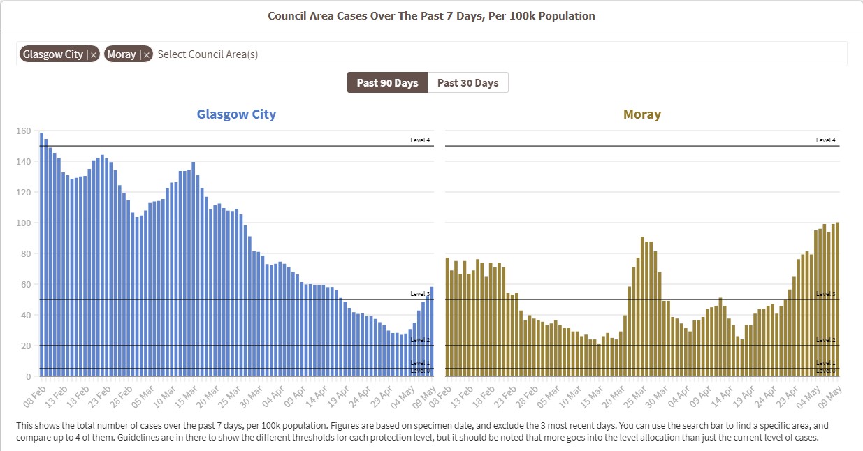 Seems bizarre to tighten restrictions on moray (which is stabilised and Now receiving intensive testing/vaccinating), and at the same time ease restrictions on glasgow (which is clearly heading rapidly in the same direction).