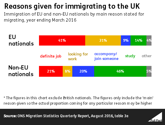 41% of EU migrants are coming for a definite job, but only 21% of non-EU migrants are.