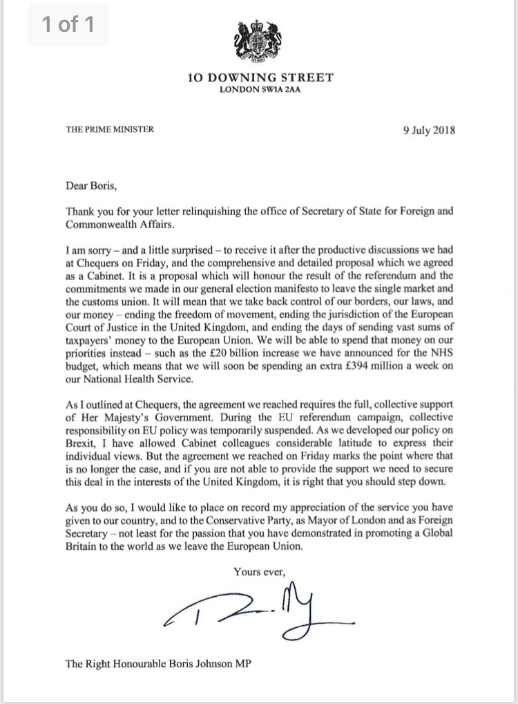This exactly, the writing is going up on the wall day by day BoJo has a put up or shut up moment here, no amount of letter writing can make him anything more than a footnote.
