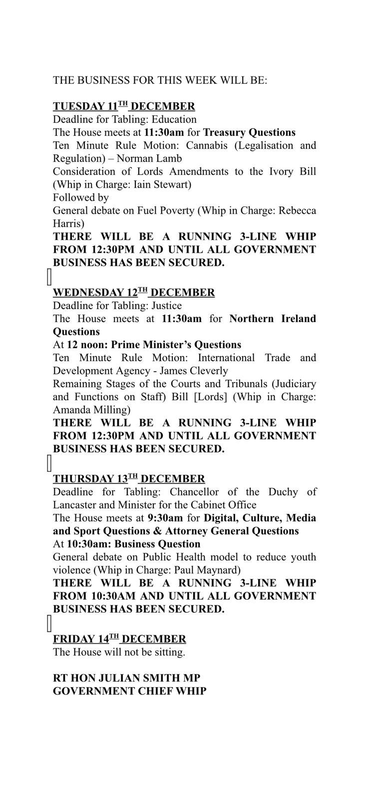 That 3-line whip is in place all week. Well, except Friday. You can't expect them not to head off early for the weekend. It's not like we're in the middle of a constitutional crisis, is it?