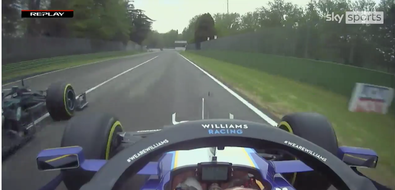 Russell pounced on the slower Bottas at Tamburello, Bottas either didn't see him or closed the door far too late forcing Russell onto the grass. The resulting spin wiped both cars out.