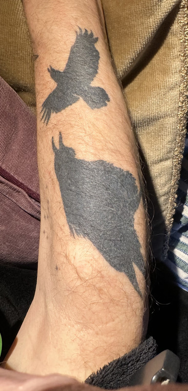 two ravens, representing Hugin and Munin - Thought and Memory - for my late partner.