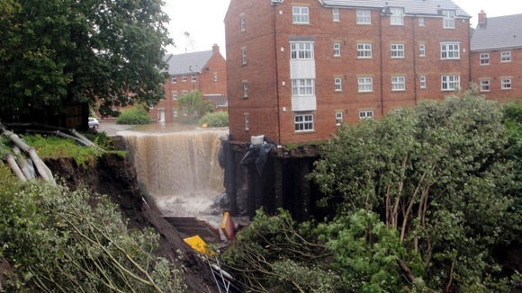 Thats the Spencer Court flats in Newburn - there was a victorian culvert under the site that collapsed, and the floodwater gouged everything out around it.