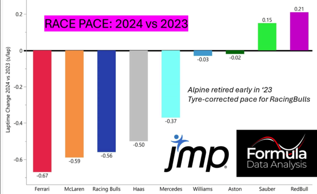Mclaren and Merc have both improved, Red Bull were actually slower at some races this year than last year.
