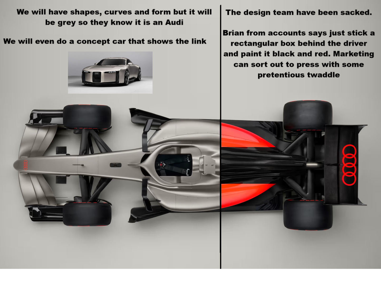 lol You know he's talking bolleaux when he says the engineers are doing a good job. Just listen to their onboards. The drivers are being nagged the whole time to manage car issues - plank wear, tyre temps, brake temps, it's ridiculous. I mean the arrogance to tell a 7x WDC to "focus on driving" when the car is this shite and has stayed the same all season 😂