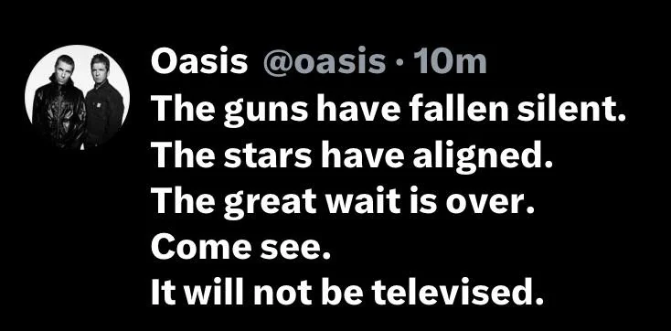 I guess I don't really get the "no real show" thing. That's just not my expectation from a band like Oasis, as opposed to the likes of Taylor Swift. I think what feeds into this is I have a strict "standing tickets only" rule for gigs. If I am standing and able to get relatively close to the action - then that's what makes it a 'show' for me. If I was seated, with the the actual gig happening on the floor below me, then I guess I would be disappointed if it wasn't an audio-visual spectacular - but I still wouldn't expect that from a band like Oasis (and hence why standing or nothing for me personally). I've been to big Oasis gigs which weren't that thrilling (Wembley Area, Old Trafford Cricket Club), but also big ones where they were amazing (Earls Court, Maine Road, Knebworth). The wall to wall off the chart reviews, from the normally very skeptical press, makes me hopeful that I'm not going to be disappointed when I get to see them in September.