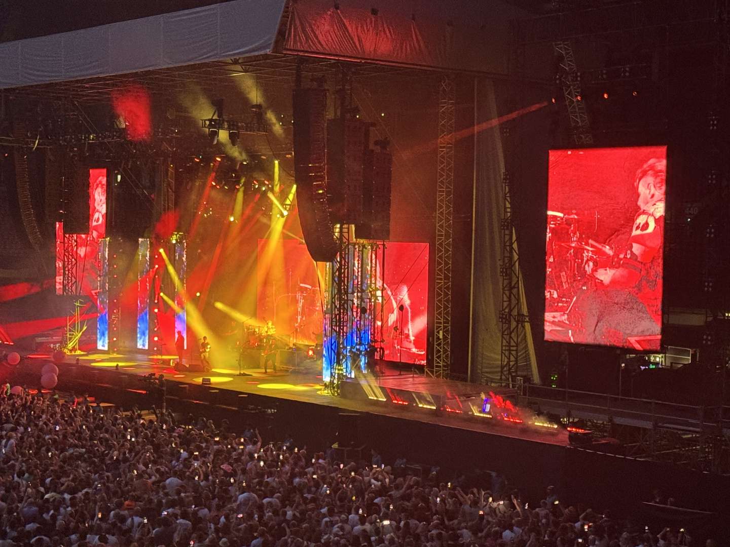 At The Olympic stadium, where I was, if anything it was the 'mids' that needed lifting. Drum + Bass was pretty clear, but thought Adrian Smith's guitar wasn't coming through as much as I'd like. (Davey's solos cut through well, but Adrian's not quite so much). Again could be just the location I was stood, or maybe increasing age starting to mean I'm losing some of the higher frequency hearing ??