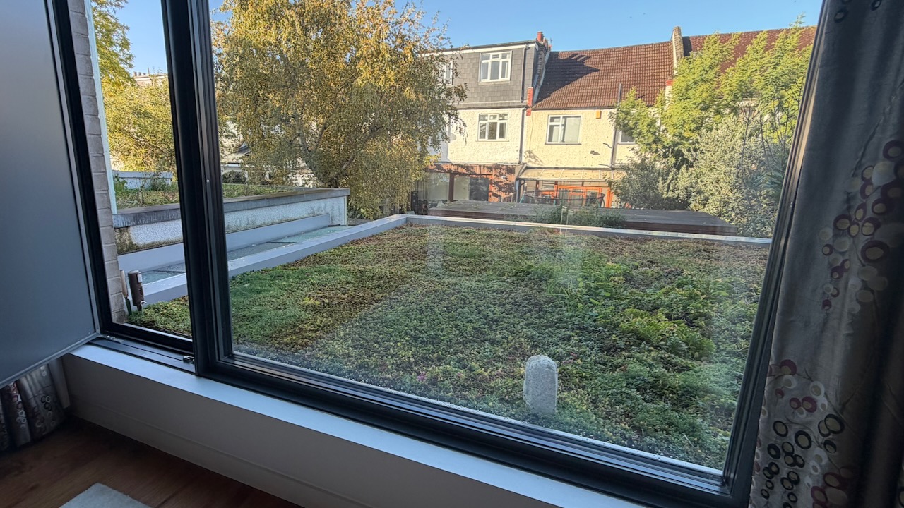 Huh, interesting point. Yeah, it was modules - it's 90sqm or so, so doing it by hand, as part of the construction, was never going to work well. The slope for most of the roof is maybe 15degrees or so, and it has occurred to me this summer that that means the water never really sticks around; particularly with the soil being so thin, it's all run off within an hour or two. But again, I figure the moss, while not desirable, helps keep some of the moisture around.Â