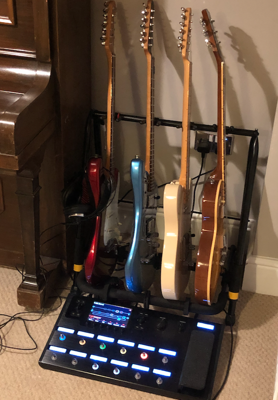 I recently bought a rack so I could put all my (electric) guitars in one place. Instead of having guitars in cupboards / under beds etc, they're now mostly* together. I thought this would mean they were accessible so they'd get played more - which they do. But an unexpected consequence is that it's making me self-conscious in an all-the-gear-no-idea sort of way. Also highlights the boring sand colour of my Tele next to the shiny red / blue Fenders. I know was recently whining about how Teles shouldn't be fancy, but this one is as plain (visually) as a guitar can be.
