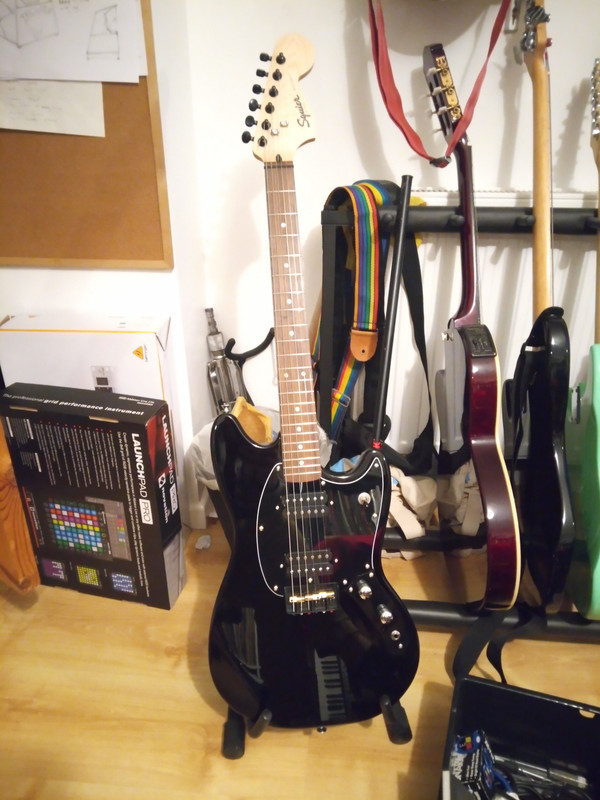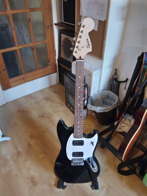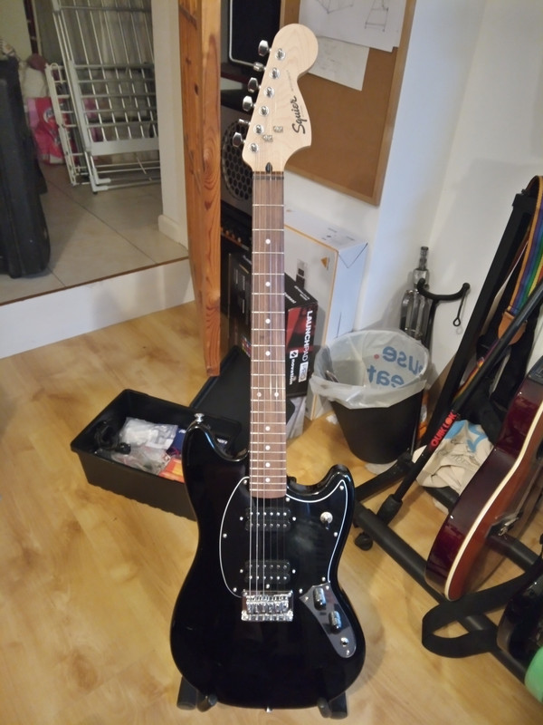 Having said that, out of the eight guitars we own between us, the one getting the most time is the Squier Bullet Mustang.