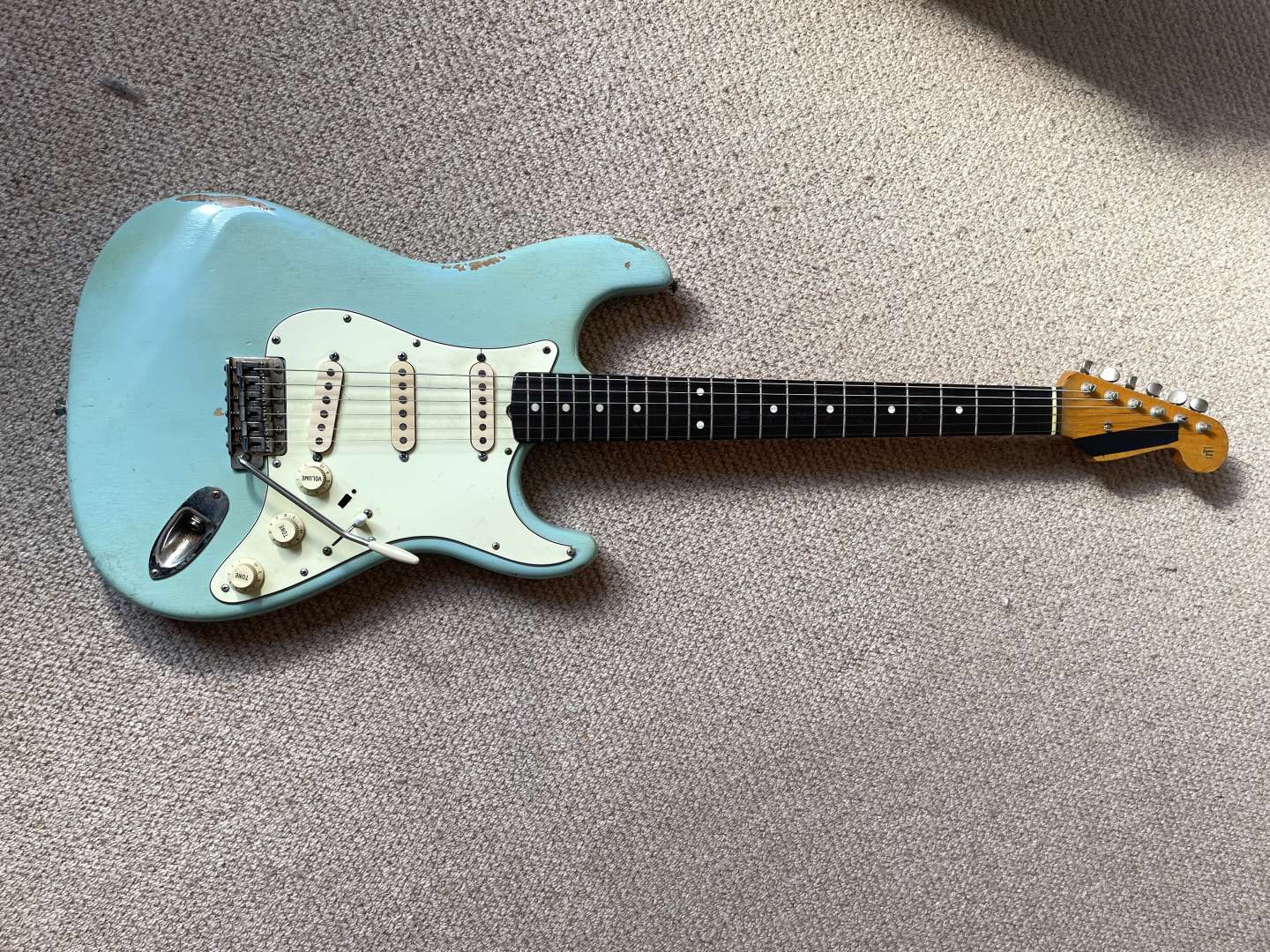 Just picked up an absolutely beautiful daphne blue road worn strat with 59 pickups for what i considered a bit of a bargain. Nicest strat I've ever played or seen.