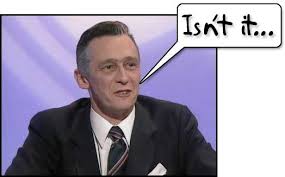 Sitting in a rather posh hotel and someone has just turned up for breakfast with a big pink jumper tied jauntily around his neck.