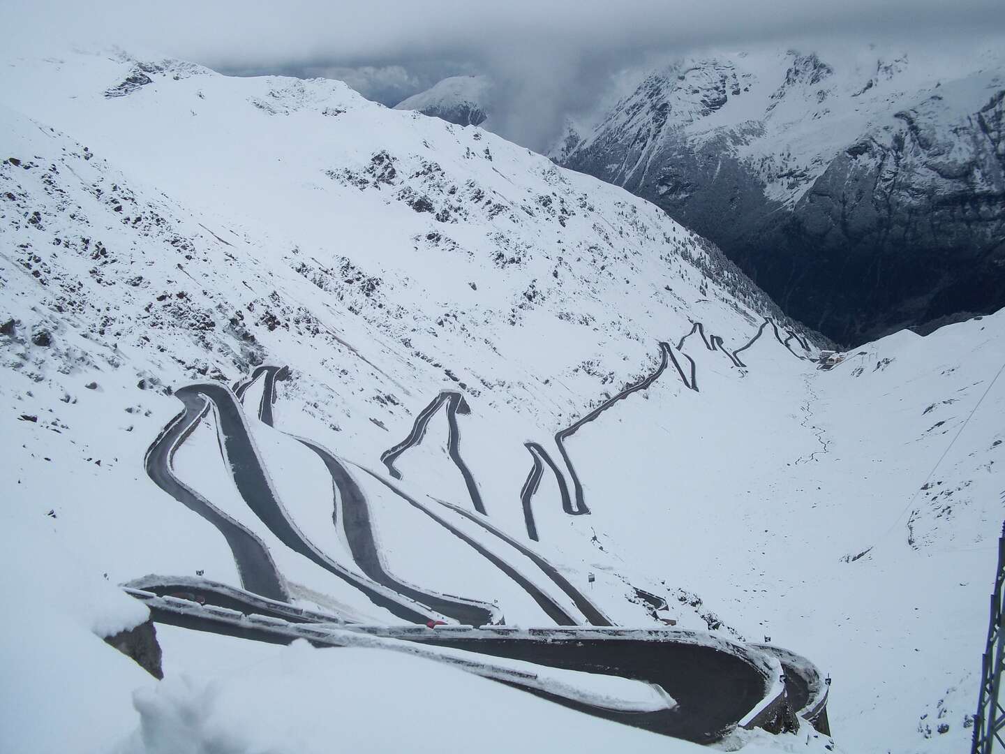 Just beware that early morning on Stelvio can leave you with challenging conditions. Its 2778m at the top. it can snow, really quite heavily at any time of the year. This was late September at about 10 am. We literally followed the snow blower up. Was amusing on a bike, in an exclusively type 2 way. Soil myself I did, with laughter I had.