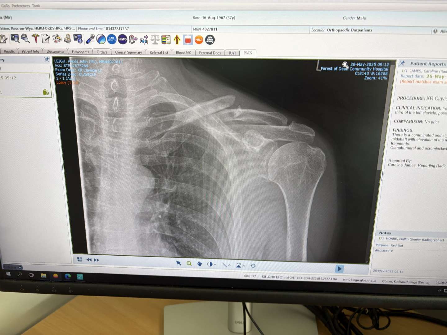 So I had proper over the bars, landed on my back and broke my collarbone. It's a pretty big separation, so been referred to fracture clinic. It looks like it's broken where the bone was a bit thin because of a previous injury that chipped a fragment off. I'm 56 so it's unlikely to re-join (as opposed to if I was 5.6 😉 )