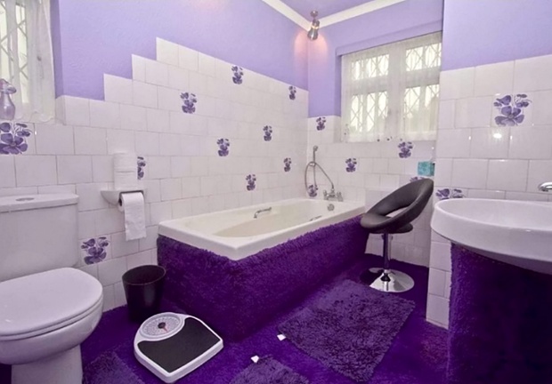 the whole house is decorated in the same colours - with the exception of a black leather bar stool in the bathroom (as you do):