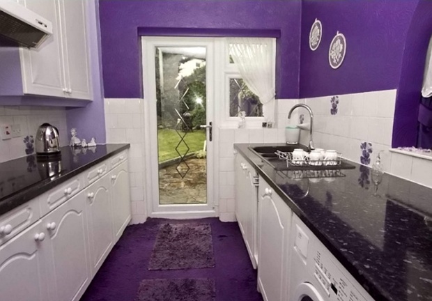 Can anyone explain why there is a dining table in the bedroom/bed in the dining room of the purple house?