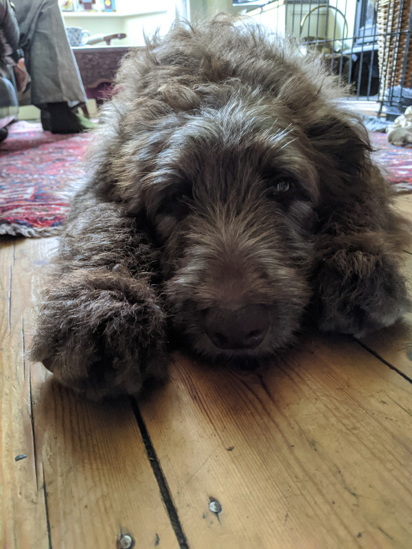 This is Harry. We got him today. 4.5 months old Bordoodle (Collie/Poodle cross)