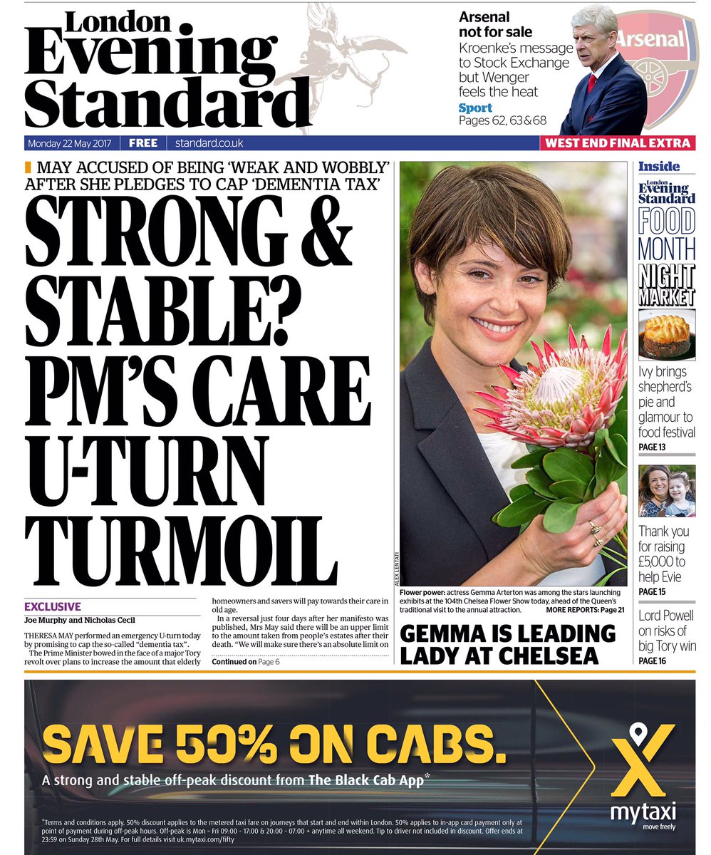 So first they piss off their core support by threatening to take their kids inheritance away from them, then in classic style they do a massive u-turn even though the manifesto is printed and two senior ministers were on the prime political news telly show only 24 hours ago defending it, and have now completely destroyed the central slogan which they've been drilling into everyone's heads for the past month. Strong and stable? Dithering and incompetent more like. I can only imagine the scene in tory HQ right now 😀