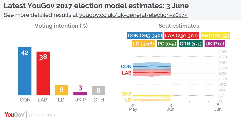 Comments about hung parliament seem very relevant - every poll so far is either conservative win or no overall majority. None have shown a labour win far as I know.