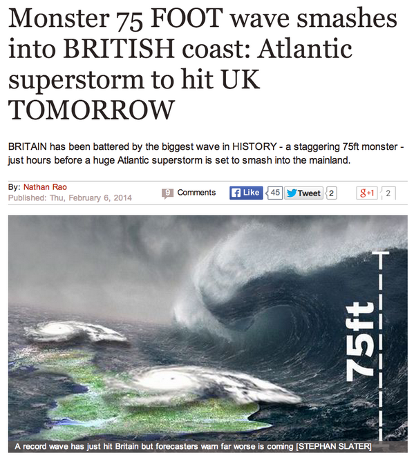 The daily Express have excelled themselves there. I'm guessing the arctic weather and snow will be riding on the back of this wave, ready to hit us at any moment.