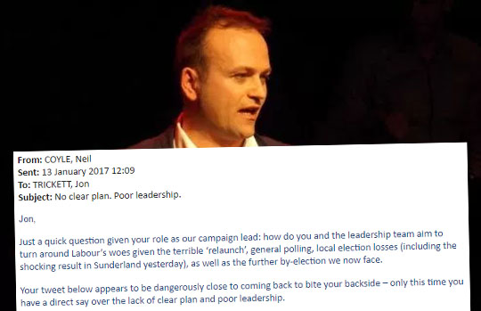 It seems like Neil Coyle thinks that having [url= https://order-order.com/2017/01/13/corbyns-campaign-director-faces-relaunch-backlash/ ]no real plan and weak leadership[/url] isn't necessarily a great strategy for success as well.