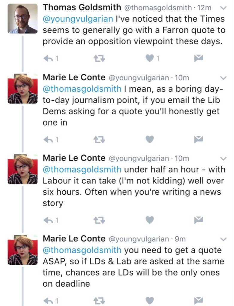 Actually the person who said that clarified that the leader's office were very quick.mefty - MemberHe might get better media coverage if his press office actually got out their reaction releases before the media's deadlines - often takes them a day when LibDems manage to produce something within a couple of hours.