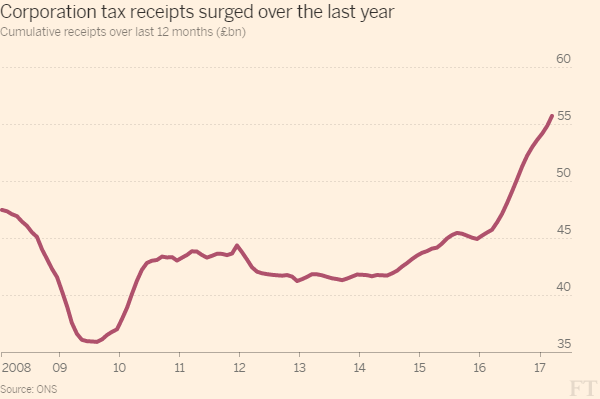 @molgrips look forwards, companies are offshoring more and more the whole internet model encourages it. As I have posted before I think the corporate tax regime needs a complete overall. We have much more control now we'll be out of the EU. Also look how receipts have gone UP when tax rates have gone DOWN. A few of us have been making similar points for the longest time here, its a tricky balance.