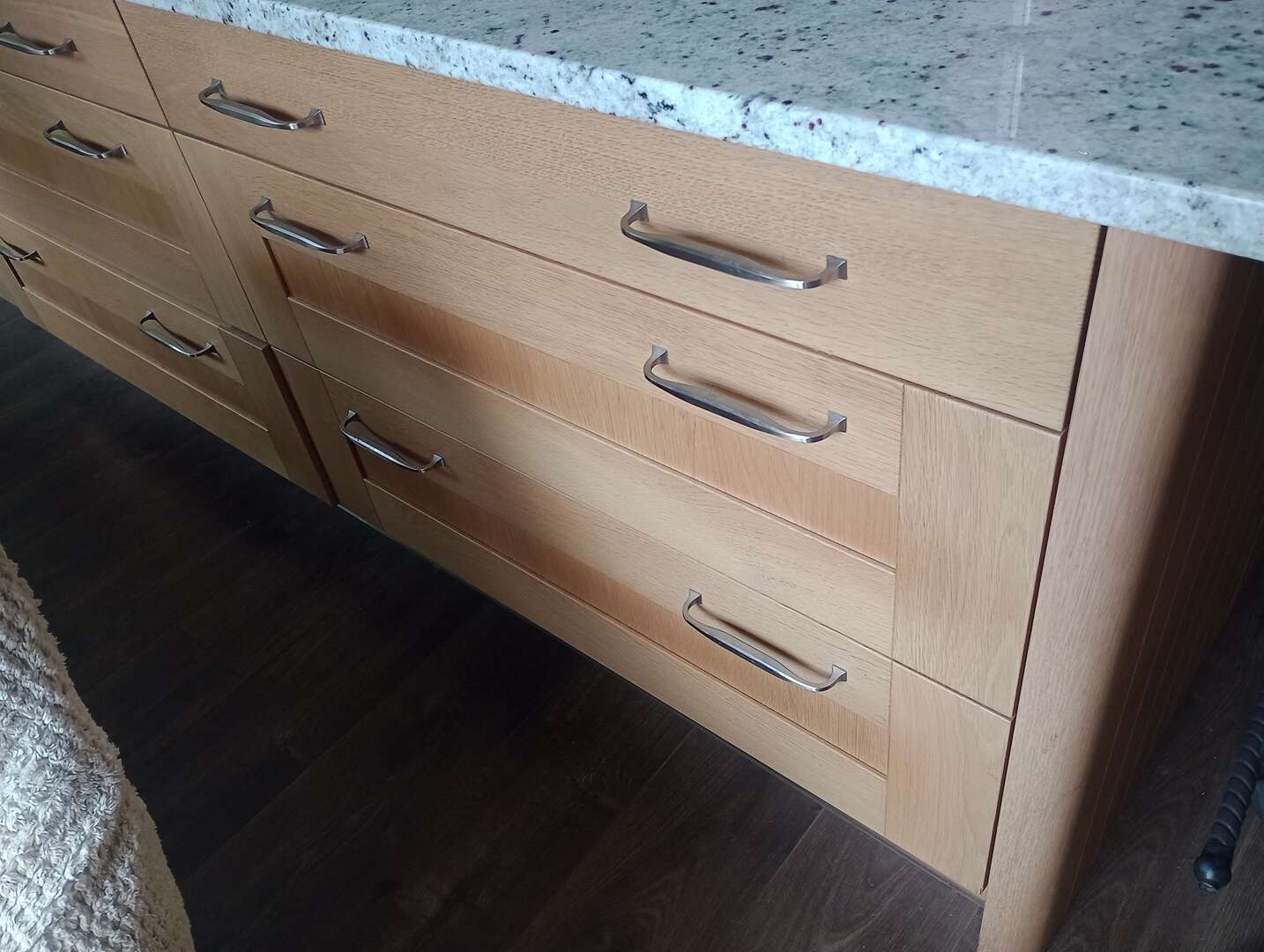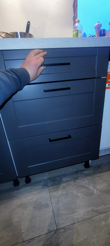 With the panel/stile/rail drawer design for the top drawer you’ve backed yourself into a corner of usability vs aesthetic rigor with “You do not put handle in the middle of shaker drawers thats absolutely mental speak”. Nonetheless I’d buck tradition for having a drawer you can open and close with ease rather than trapping fingers or scrabbling for the handle