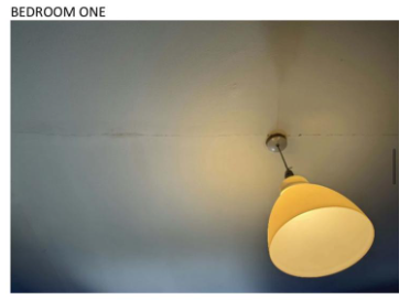 This is the ceiling of the bedroom below taken from the inventory when they moved in showing that a leak had been there at that point: