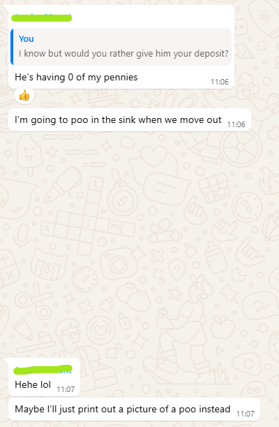 Basically, I'm saying the landlord has zero chance of making that stick, even if she does poo in the sink.