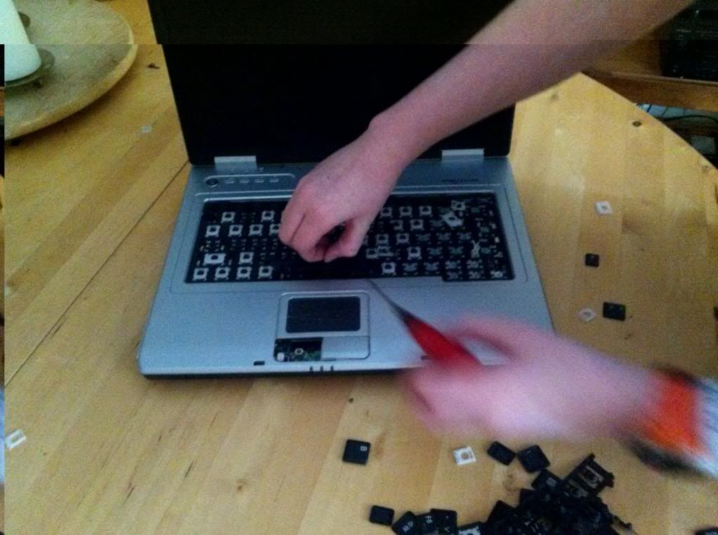 Injury's so far...skewered finger, from stabbing screwdriver into screen and finger, not much blood.