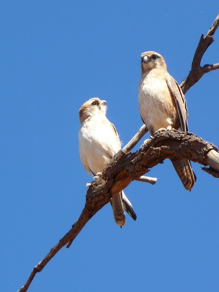 Sue, a Peregrine/Saker cross. Somewhere on my computer I've got a photo of one of the Bath Peregrines perched on the church where they nest plucking a pigeon or similar, a little trail of feathers drifting away, but it's not on line and I can't get to it at the mo'.