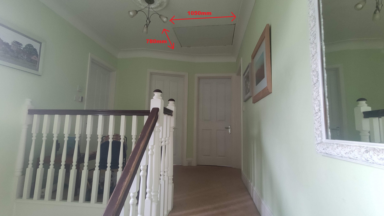 I had to make the hatch bigger and rotated the opening by 90 degrees to fit between the joists, but making the hole bigger has been a revelation! I can now get stuff in and out without being a contortion artist.
