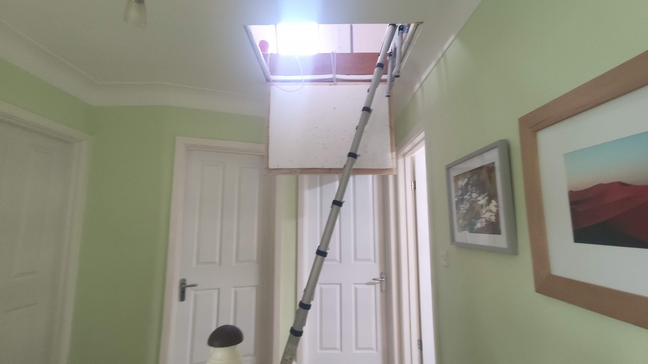 We used to have a clunky metal sliding step ladder into the attic which the wife hated because it was always dropping dirt onto the carpet when it was opened regardless of how much you cleaned it and was difficult to put away as it covered half the available attic floor when stored. When I converted half the loft to an art studio I replaced those steps with a simple telescopic ladder that was light, easy to use and compact. Clearly this was wrong as the ladder is too steep and has no hand rail.