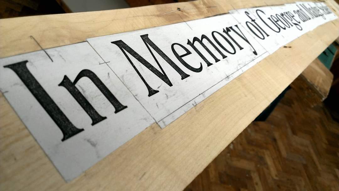 I used to make lettering by printing off the lettering, sticking it to the wood, routing near to the lines, crisping them up with a chisel, then cutting away more material around, so you end up with letters that are proud.