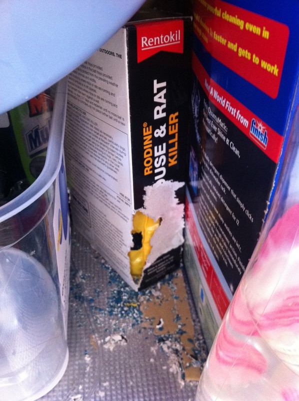 Mouse or more likely rat ate all of my Savlon and also a bottle of PVA glue. Don’t know how that scores? Probably a moderate rodent.