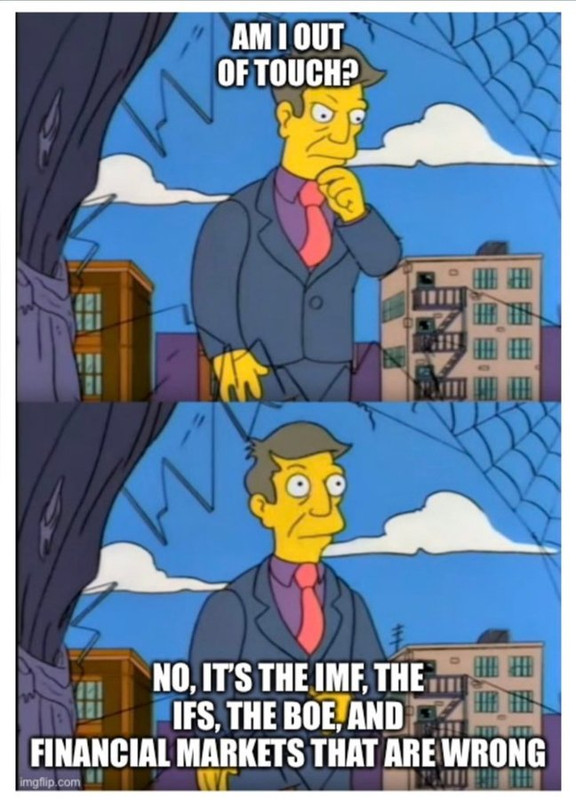 The same applies to Kwasi and Truss .. if you get over the idea they give a shit what happens to either the economy or people or being re-elected vs their personal financial wealth OR you have to believe they really are so thick/bat-shit crazy to not only totally ignore what any independent expert would have told them but to then pour petrol on the fire through their lack of response or explanations.