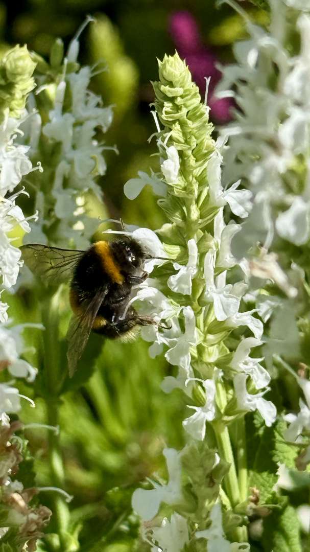 I was sat in the garden watching the bees enjoying the sage when I saw this thread. So here is a near real time photo