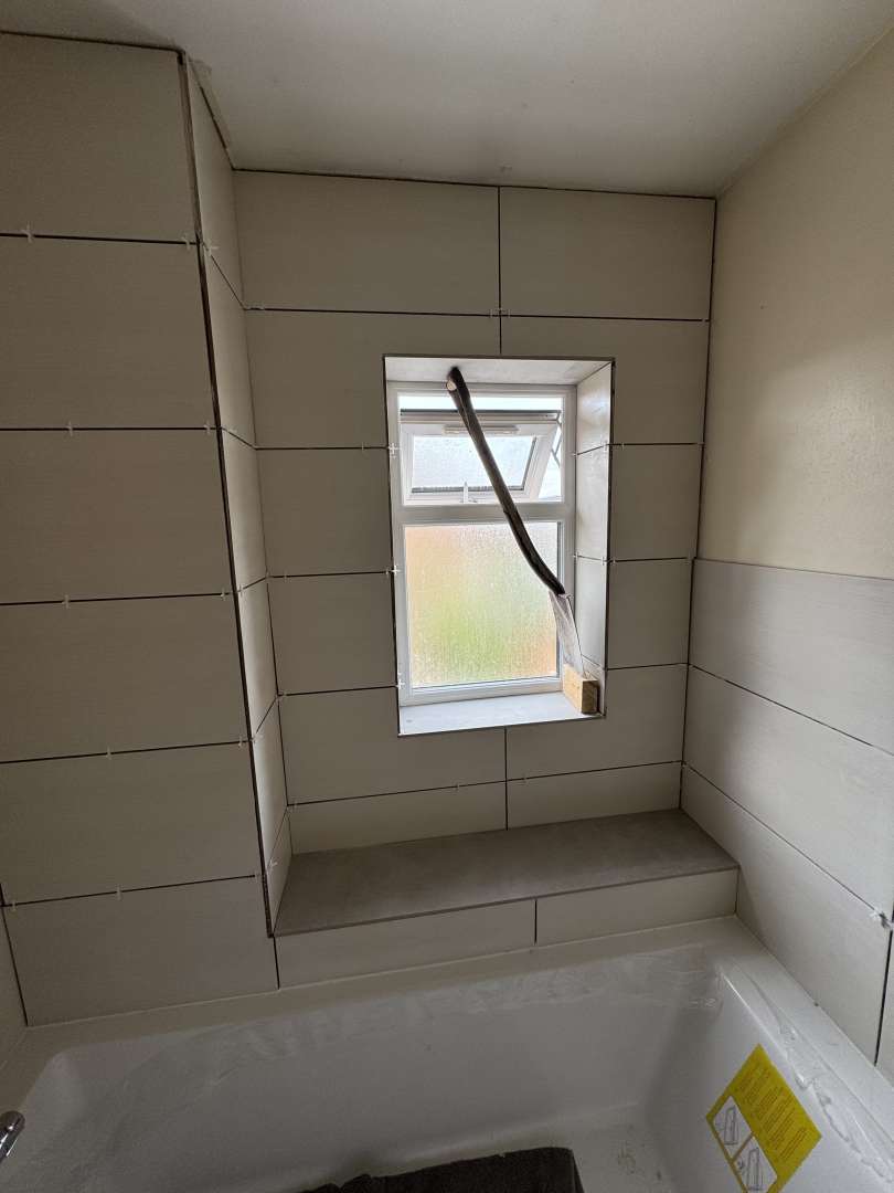 before grouting, just make sure joints are clear and everything is as clean as you can. Don’t grout the internal corner joints or the joint between tray and tile, keep that empty for the silicone.
